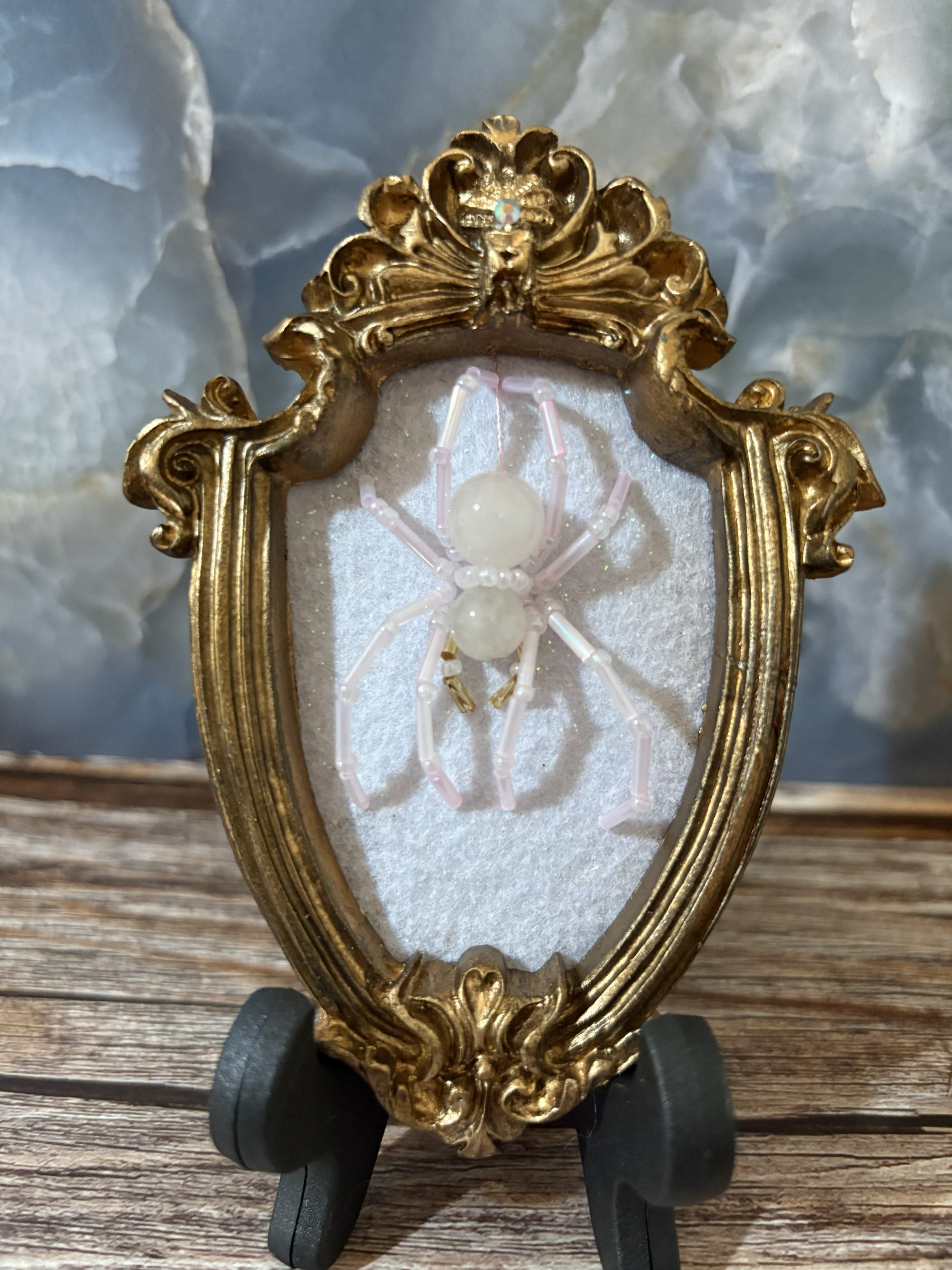 • Gold dry brushed mini frame with added crystal