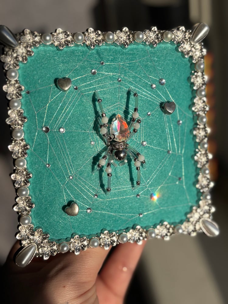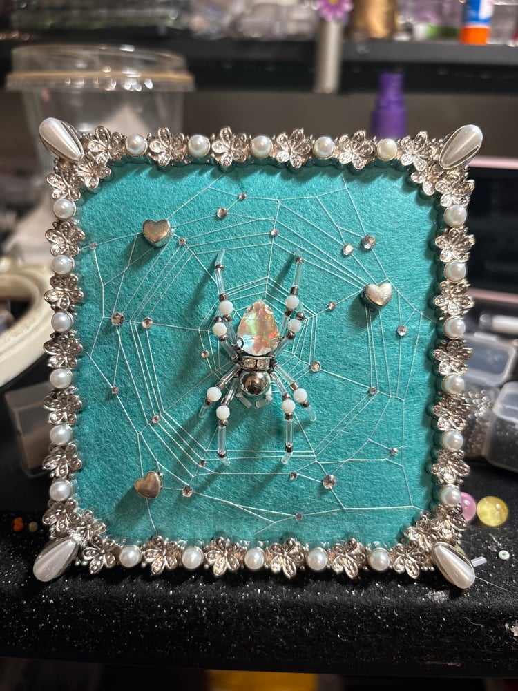 • Glass teardrop abdomen with silver head and silver gem collar